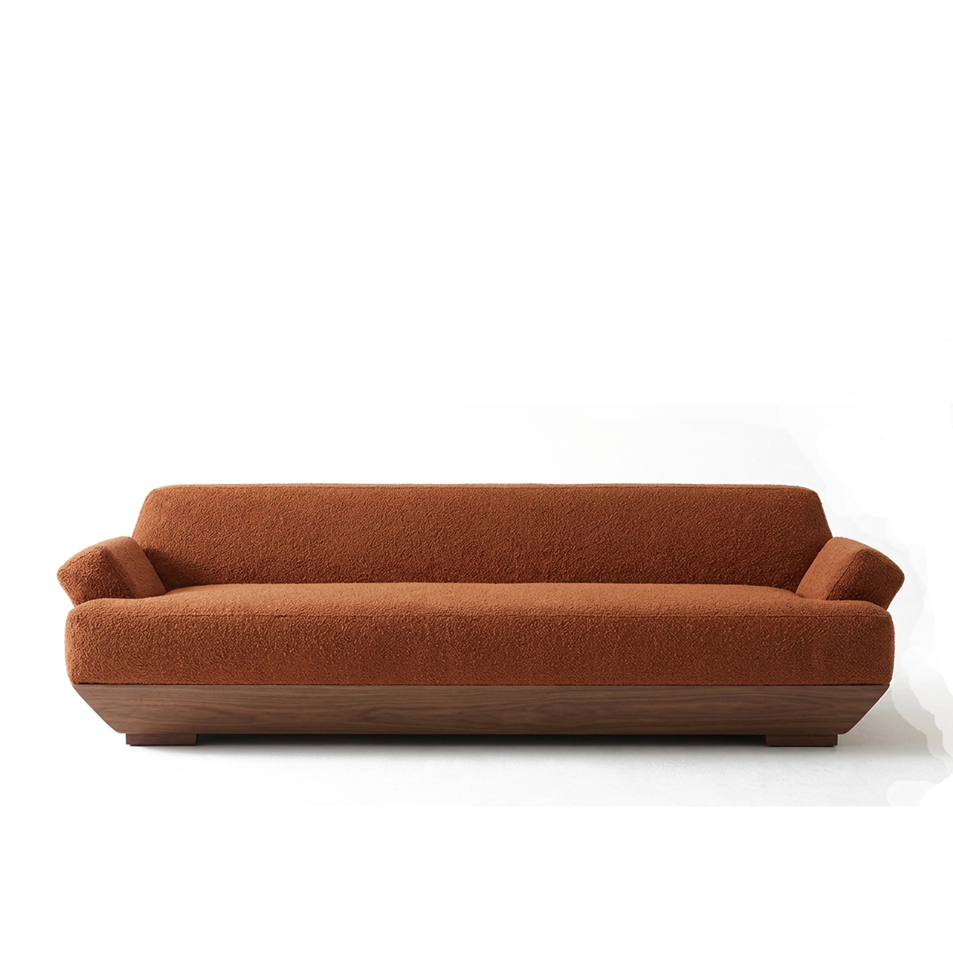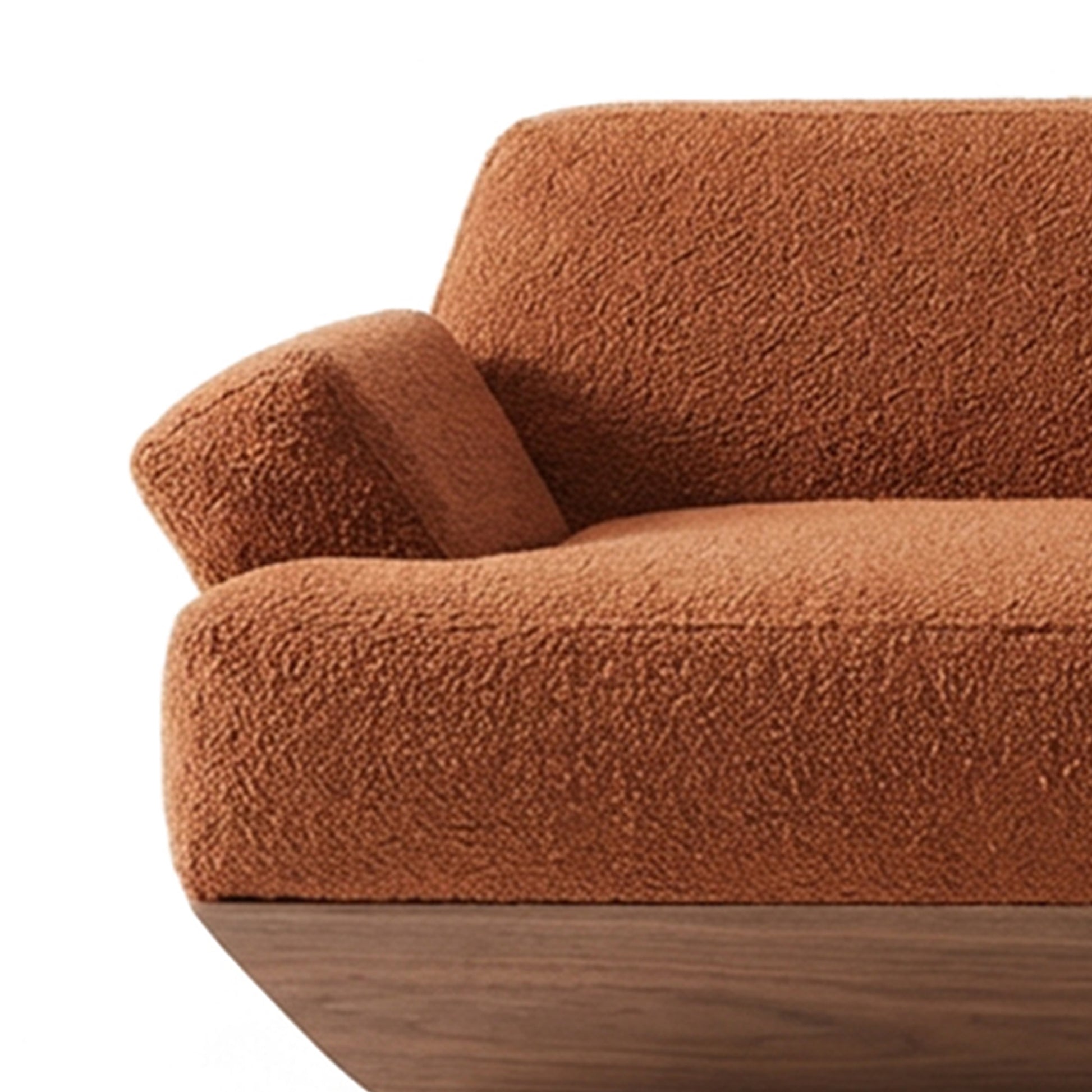 Soft, inward-sloping backrest and armrests creating a welcoming embrace