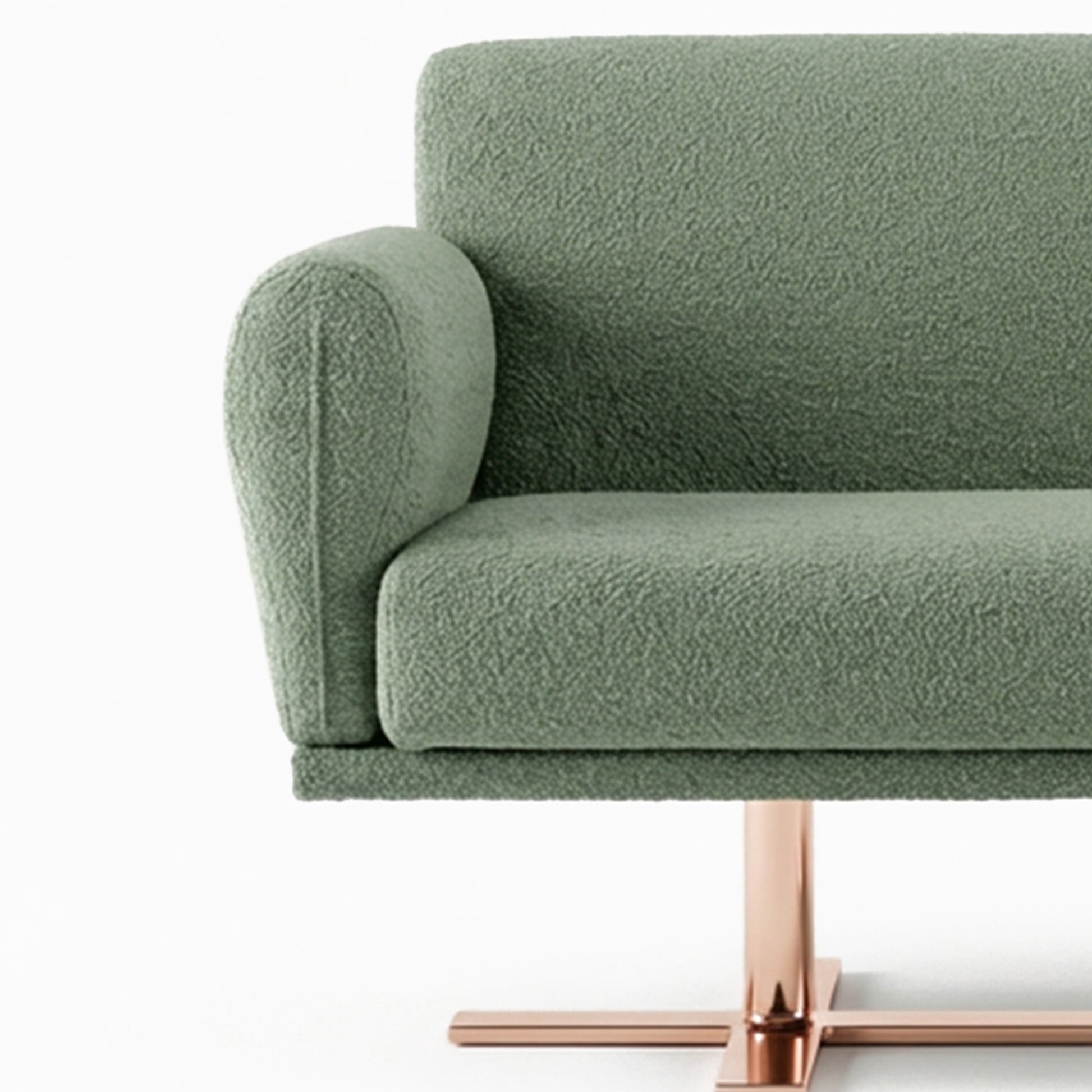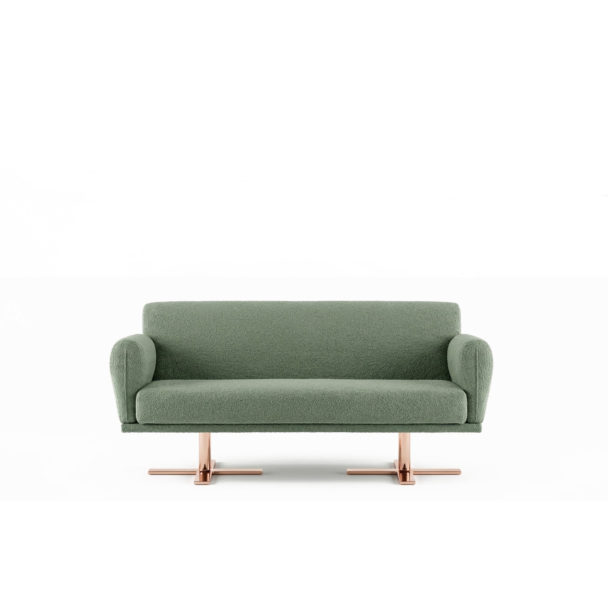 Brightly finished support defines contact with the ground, adding contrast and character
